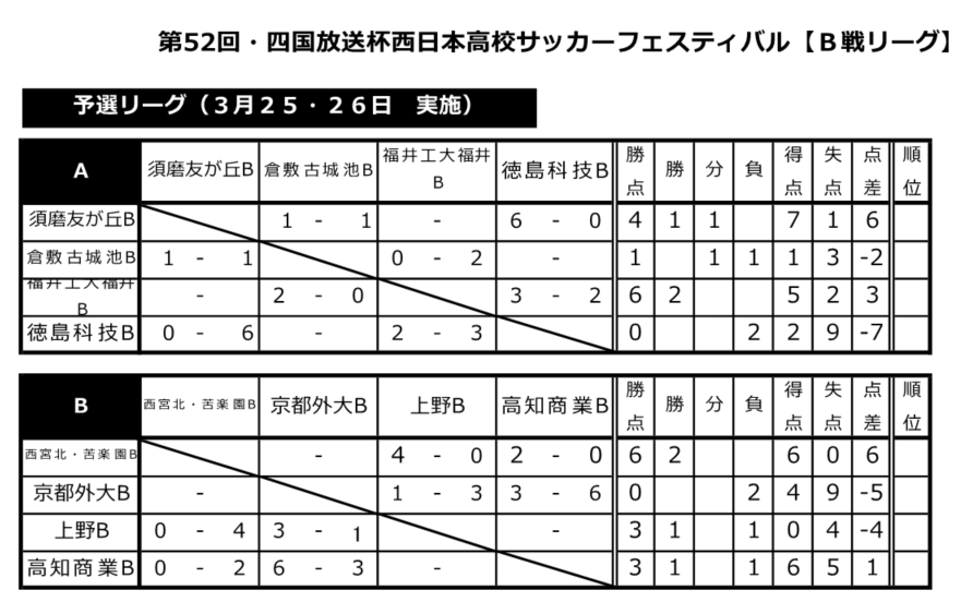 B戦リーグ結果(3/25、26) ※ダウンロード